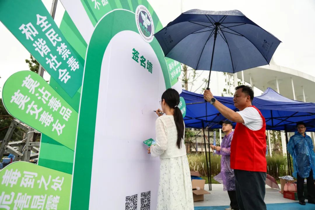 市体育中心外广场上 由九江市禁毒委、九江市公安局主办的 “健康人生、绿色无毒” 九江市2024“防范青少年药物滥用” 禁毒宣传活动 正火热举行 文艺的星火与禁毒的元素交织 熠熠生辉、共同绘就 平安九江大美画卷 本次禁毒宣传活动 特别邀请了 著名歌手云朵作为禁毒大使 她表示 "毒品是全人类的公敌” 自己将努力让 “健康人生、绿色无毒”理念 走进千家万户 “这个红色的小药丸,就是大麻” 当日 体育中心外广场人头攒动 观众络绎不绝 禁毒工作人员在展台旁 向过往观众 展示禁毒仿真模型 详细介绍毒品的种类 危害和预防措施 并分发禁毒宣传册 呼吁大家 珍爱生命、远离毒品 此次禁毒宣传活动 设有禁毒宣传区、互动游戏区 扫码领奖区、签名墙区等六大区域 旨在通过现场观摩、发放宣传册 互动游戏、有奖问答等宣传形式 进一步提高全民 识毒、防毒、拒毒意识和能力 现场活动深受群众欢迎 气氛热烈非凡 “我和我的家人坚决抵制毒品” 现场 许多观众主动打卡合影 表达自身抵制毒品的决心 整场活动历时两小时 共发放宣传资料2000余份 禁毒小礼品300份 现场咨询答疑100余人次 不仅有效提高了观众 对毒品的认识和防范意识 还增强了他们的自我保护能力 营造了全民参与禁毒的 良好社会氛围 为初夏的九江增添了 欢乐、平安、幸福的色彩 |