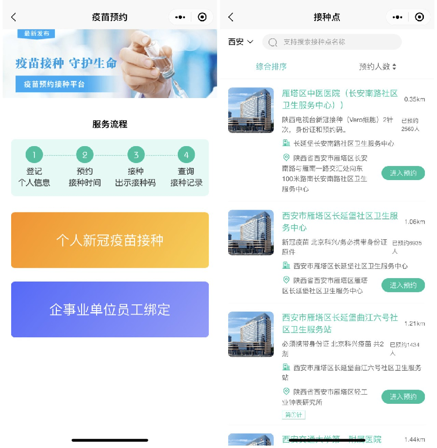 目前,西安市已全面放开企事业单位和个人网上预约,线上预约通过“西安市民健康”微信公众号或“健康西安公众服务”小程序进行。