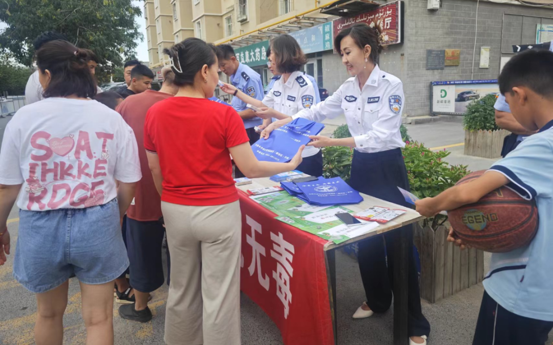 近日,乌鲁木齐市高新区(新市区)司法局友谊路司法所联合友谊路派出所,在坤嘉园小区开展禁毒宣传活动,通过展示毒品模具、发放宣传资料等方式向辖区群众宣传禁毒知识,识破毒品诱惑,抵制毒品危害。
