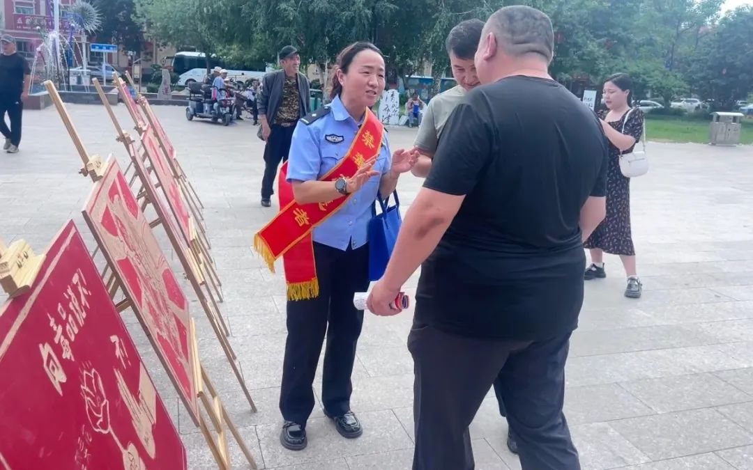 近日,布尔津县司法局联合多部门在街心公园开展“6·26”国际禁毒日宣传活动暨禁毒刻板画展,工作人员通过悬挂横幅、陈列展示新型毒品仿真模型及禁毒刻板画、发放宣传资料等方式,宣传禁毒相关的法律法规,扩大禁毒宣传的覆盖面和影响力,让禁毒知识走进千家万户。