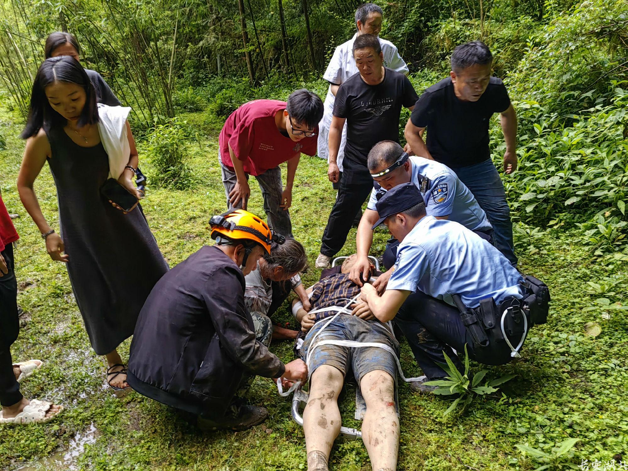 随后,民辅警、村民与赶来救援的消防员会合,沿着狭窄的临崖山路,翻过沟坎、披荆斩棘,经过约20分钟努力,一路颠簸,终于将李先生顺利抬出天坑和山林,送医救治。