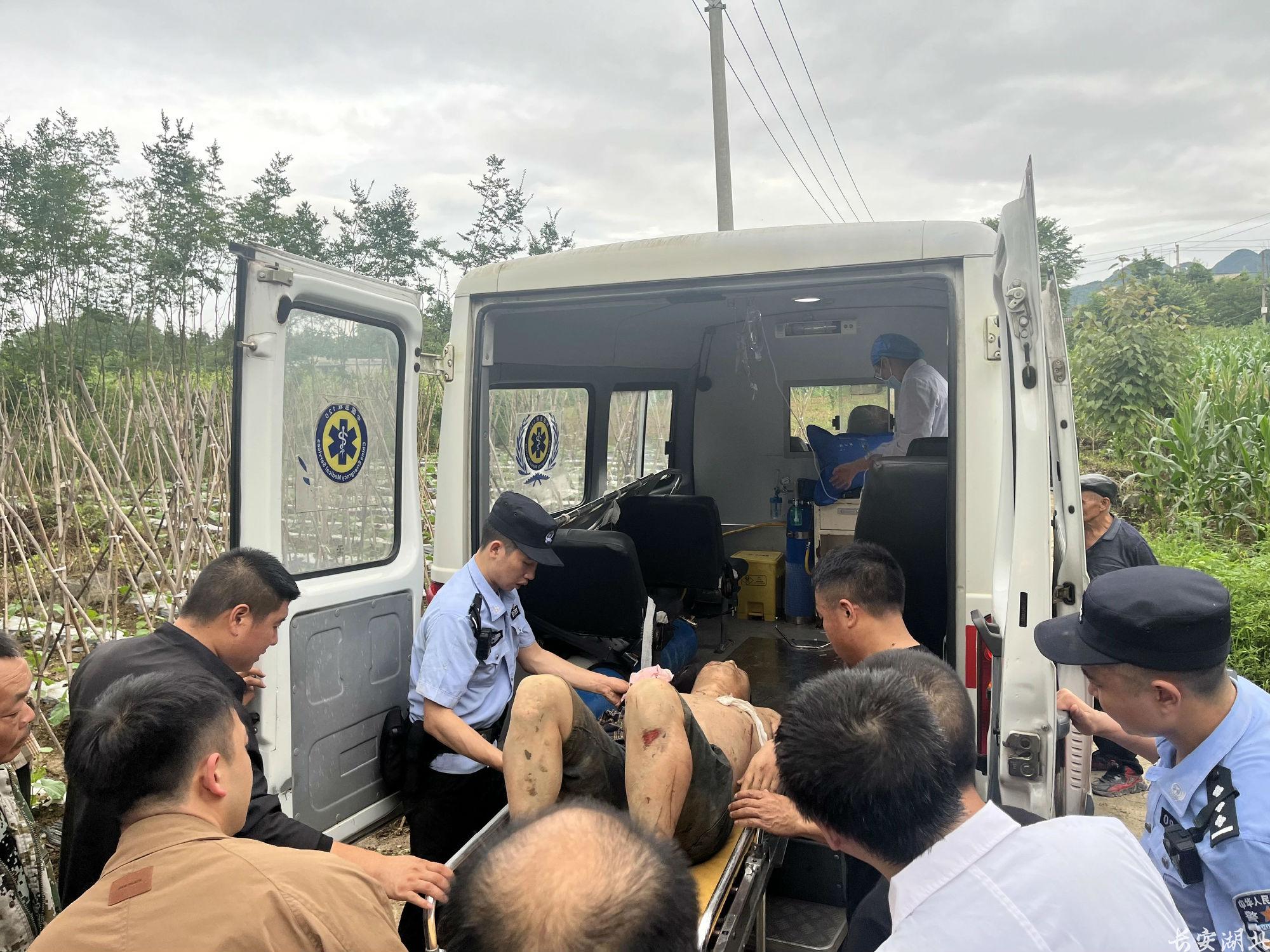 “人没得事就是万幸!”民警向贞睿说。路况不好,左边靠山,右边临崖,稍不小心就会掉落山崖,路上荆棘丛林,救援人员衣服裤子多处被划破,身上多处被刺戳伤。