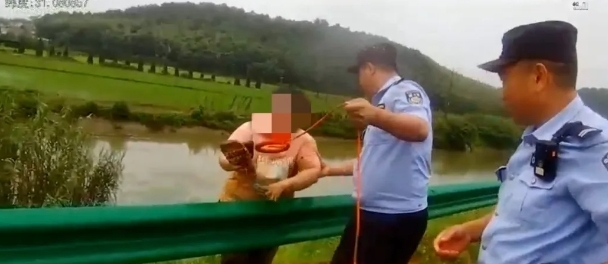 很快,天降“绳兵”!强大姐抓住刘警官抛下的救援绳,安全地走上了圩埂。虽然一身泥水,强大姐却因逃过一劫心情轻松,向民警们连连道谢。