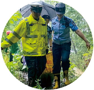图③ 近日,安徽省舒城县五显镇韦洼村一条山体沟渠受持续暴雨影响被洪水冲破堤坝,给群众带来极大安全隐患。舒城县公安局五显派出所组织辖区平安守望联盟队员,与镇村干部及当地群众一起冒雨抢修堤坝。通讯员 王可海李跃东 摄