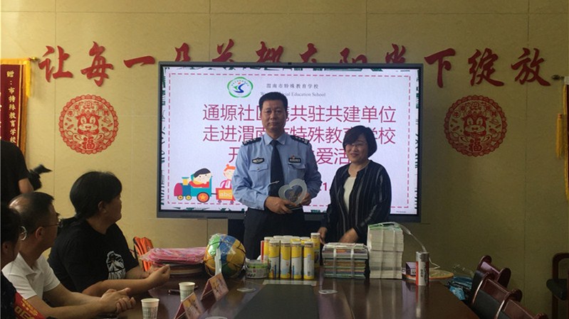 5月28日,在“六一”儿童节到来之际,陕西省渭南强制隔离戒毒所联合党建联席通源社区走进渭南市特殊教育学校开展“大手拉小手我们一起走”主题党日活动。