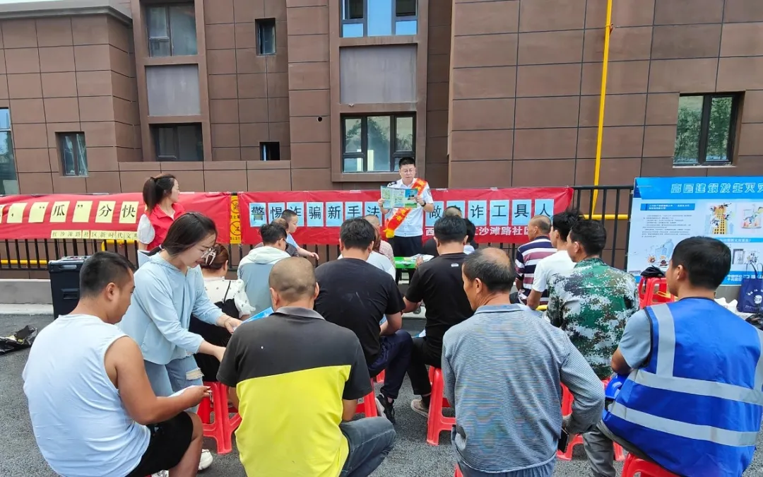 7月4日,乌鲁木齐经开区(头区)西湖司法所联合红沙滩路社区在西城阳光小区内开展“警惕诈骗新手法·不做电诈工具人”主题宣传活动。活动中,司法所工作人员通过发放宣传单、讲解典型案例和现场解答的方式,有针对性地向工地工人详细介绍并分析了常见电信网络诈骗的套路、作案特点,帮助工地工人提高防范意识和分辨能力。
