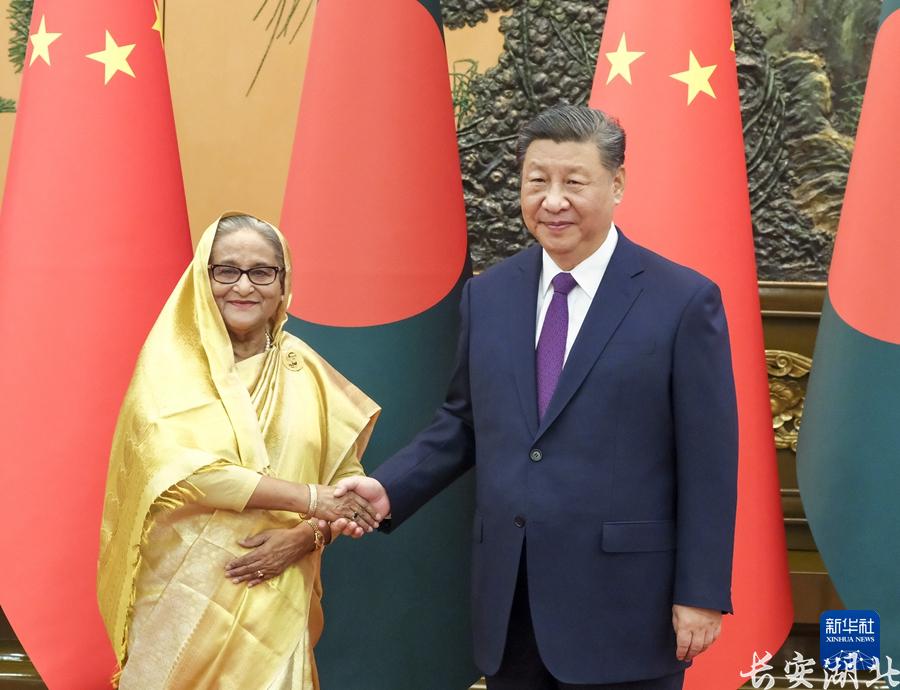 习近平指出,中国和孟加拉国是相知相交的友好近邻,两国友好往来绵延千年。建交以来,两国始终相互尊重、相互支持,平等相待、合作共赢,树立了国与国之间尤其是“全球南方”国家间友好交往、互利合作的典范。中方珍惜中孟两国老一辈领导人缔造的深厚友谊,愿以明年建交50周年为契机,深化高质量共建“一带一路”,拓展各领域合作深度和广度,推动中孟全面战略合作伙伴关系行稳致远。