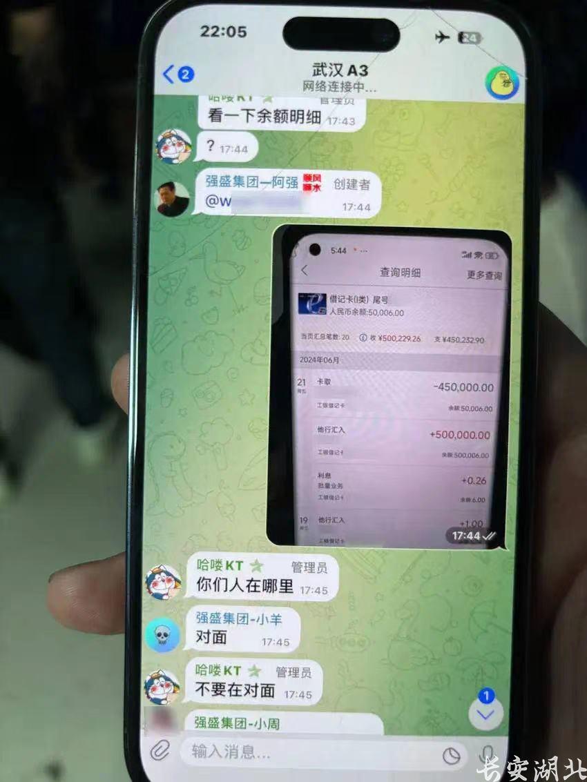 根据游某提供的线索,民警研判推测“跑分车队”的3名头目此时就在洪山区维佳佰港城附近。当晚,分局反诈中心联合洪山派出所警力,冒雨将3人和另外一名“卡农”赵某抓获。此时,嫌疑人赵某的卡中还有尚未被转走的50万元涉案资金。