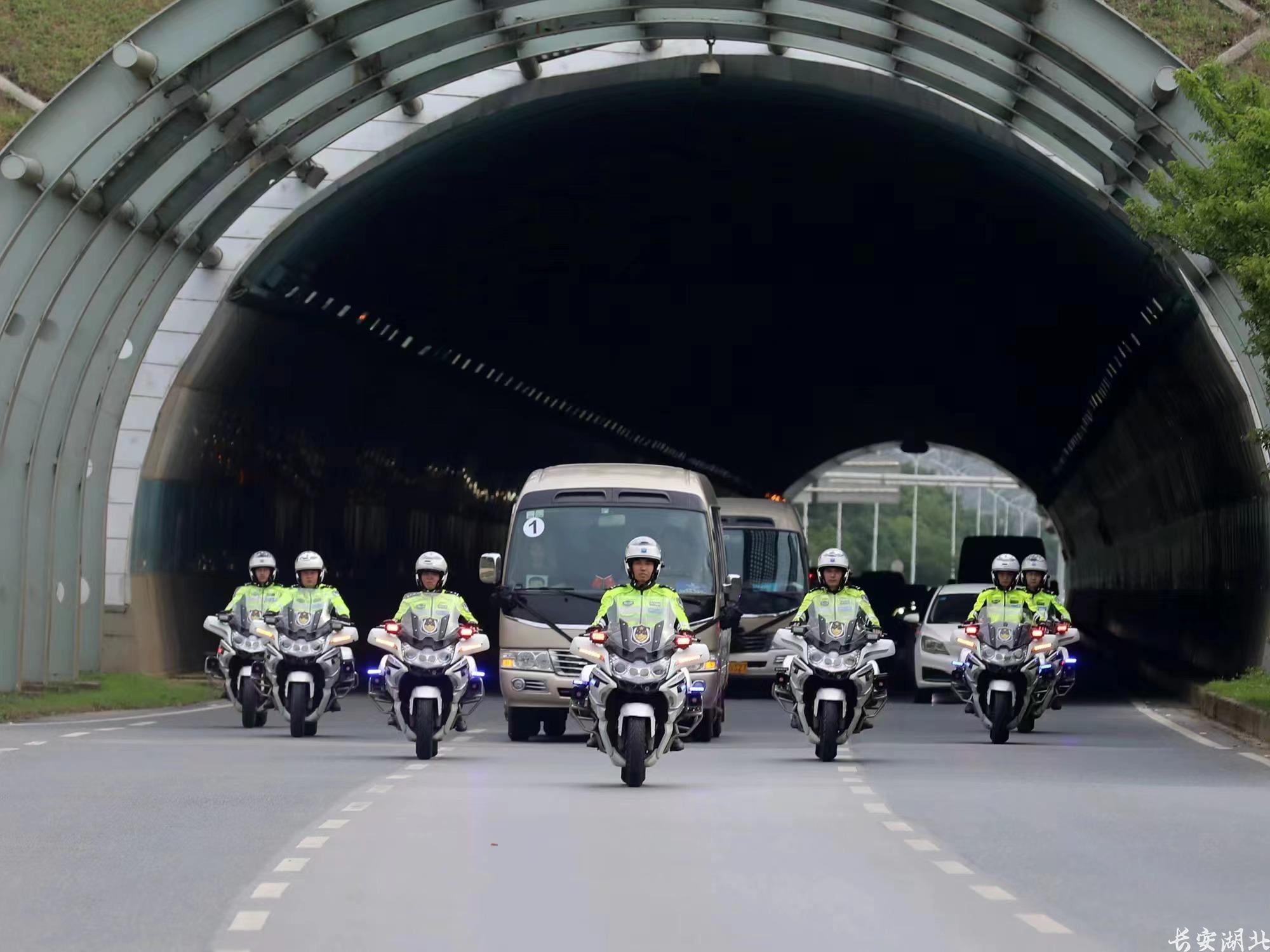 灵车车队在汉警快骑的护卫下,抵达九峰山革命烈士陵园。通讯员供图