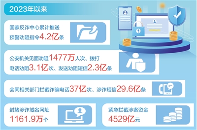 视频里甜言蜜语的“妹妹”,竟是骗子?实体店接的大额订单,可能涉及洗钱?机票改签来电,背后是诈骗? 当前,电信网络诈骗犯罪呈现新动向、新特点。不久前,以“警惕诈骗新手法,不做电诈工具人”为主题的“全民反诈在行动”集中宣传月正式启动,通过不断加强反诈宣传力度,进一步增强群众的防骗意识和识骗能力。 推广引流活动转到线下,警惕电诈新动向、新特点 前不久,来自浙江的张女士接到一通自称“XX市公安局民警”的来电,称其卷入了一起诈骗案,该案其余涉诈人员均已抓捕到案,为配合公安调查,需将银行账户中的钱款取现,核验是否涉诈。于是,张女士将银行卡中现金全部取出。几小时后,一名男子将钱拿走。直到张女士想询问资金核查进度时,才发现自己上当受骗,赶忙报案。 “‘不见面’‘不接触’是多数电信网络诈骗案件的显著特征,但在一些地方出现了一种新型诈骗,嫌疑人冒充‘警方’‘售后’‘业务员’等,直接与受害人面对面取钱,迷惑性更大,导致受害人轻信骗局,造成经济损失。”办案民警介绍。 近年来,面对花样翻新、层出不穷的电诈手段,全国公安机关开展“云剑”“断卡”“断流”“拔钉”等专项行动,对电信网络诈骗及其关联违法犯罪依法严打、紧抓不放。 “引流”是电诈链条的“前端服务”。受害人先被各类“引流”方式诱导,加入指定微信群、QQ群或其他群组,随后电诈分子对入群人员实施刷单返利和虚假投资理财诈骗。 近期,公安机关在工作中发现,随着网络监管力度不断加大,越来越多涉诈推广引流活动转到线下进行。不久前,云南省陆良县的丁某、吴某在微信朋友圈看到一则兼职广告,便按照要求到夜市做“地摊引流”,向不特定人群发放小礼品并将其拉进各种聊天群。公安机关接到举报后,马上将丁某、吴某带回调查,发现背后隐藏着一个电诈团伙。 “在这类案例中,有的人虽然意识到‘引流’工作不正常,但抵不住金钱诱惑,身陷其中。而这些行为实质上都是在帮助电诈分子从事诈骗活动。根据法律规定,可能涉嫌帮信罪或诈骗罪。”办案民警表示。 加强预警劝阻、支付冻结,持续织密筑牢防护网 一天傍晚,辽宁省本溪市的王女士接到电话,对方自称是某电商“客服”,说王女士购买的物品质量出现问题,厂家要给她退款。正当王女士按照“客服”要求操作时,本溪市公安局电信网络诈骗犯罪案件侦查支队的预警电话打了进来:“你可能接到冒充电商客服的诈骗电话,千万不要相信……” “在日常工作中,我们会根据系统推送的劝阻电话,第一时间联系有潜在被骗风险的群众,提醒告知其接到的是诈骗电话或登录过涉诈APP,不要转账,小心骗局。”本溪市公安局电信网络诈骗犯罪案件侦查支队支队长赵云介绍。 在江苏,有1600余支专职劝阻队伍守护着人民群众的“钱袋子”。“如果上门劝阻跟不上,往往就会错失资金预警处置的最佳时机。”江苏省宿迁市公安局宿豫分局珠江路派出所副所长孙远介绍,专职劝阻警力对资金预警指令承担“首接负责制”,每支反诈劝阻队都争取用最短时间完成上门见面、处置、反馈,最大限度把劝阻警力聚焦到被骗群众身上。 预警劝阻慢一分钟甚至几秒钟,都会对群众财产安全产生截然不同的影响,这种争分夺秒的紧迫感还体现在快速止付过程中。 前不久,接到受害人张先生的报案后,上海市公安局长宁分局反诈分中心立即启动止付机制,联合属地银行对相关账户进行冻结,成功将张先生的20万元被骗钱款冻结在一级账户。“我们通过完善快速止付机制,在预警、接警、侦查各个环节同步实行高风险账户临时保护、既遂账户快速止付、涉案资金追缴返还等措施,最大限度减少群众财产损失。”上海市公安局刑侦总队九支队支队长沈安俊介绍,今年以来,依托前端预警和资金防阻体系,成功拦阻涉诈转账7.9万余笔,直接避免群众经济损失17.1亿余元。 近年来,公安机关大力开展预警劝阻、支付冻结,持续织密筑牢防护网。2023年以来,国家反诈中心累计推送预警劝阻指令4.2亿条,公安机关见面劝阻1477万人次、拨打电话劝阻3.1亿次、发送劝阻短信2.3亿条,会同相关部门拦截诈骗电话37亿次、涉诈短信29.6亿条,封堵涉诈域名网址1161.9万个,紧急拦截涉案资金4529亿元。 开展反诈宣传活动,提升群众识诈防诈意识能力 一杯茶水、几块西瓜,炎热夏日的午后,河南省新郑市公安局龙湖派出所社区民警马玉璞在辖区支起了“平安茶摊”。 “如果接到陌生电话,记得要打电话核实;如果发现被骗,一定要马上报警……”马玉璞向路过的居民讲解防诈小常识,大家围坐一团,互相交流防诈妙招。“我给大家发了警民联系卡,谁遇到可疑情况,随时都可以打电话找我。”马玉璞说。 一天晚上,马玉璞接到辖区商户王女士的电话求助。王女士称,有人以检查店铺经营是否合规为由,要求她把身份证信息和验证码发过去。正当她准备输入信息时,想到了马玉璞平时做的反诈宣传,立即打电话核实情况。了解情况后,马玉璞马上确定这是诈骗行为。“我们商户的身份信息和银行卡是绑在一起的,幸亏马警官及时阻止,要不然所受损失不堪设想。”王女士感激地说。 非遗花鼓表演、反诈宣传三句半……在浙江省义乌市福田街道宗宅文化礼堂内,伴随着热烈的掌声,丰富多彩的反诈文艺表演轮番上演。6月25日,义乌市公安局