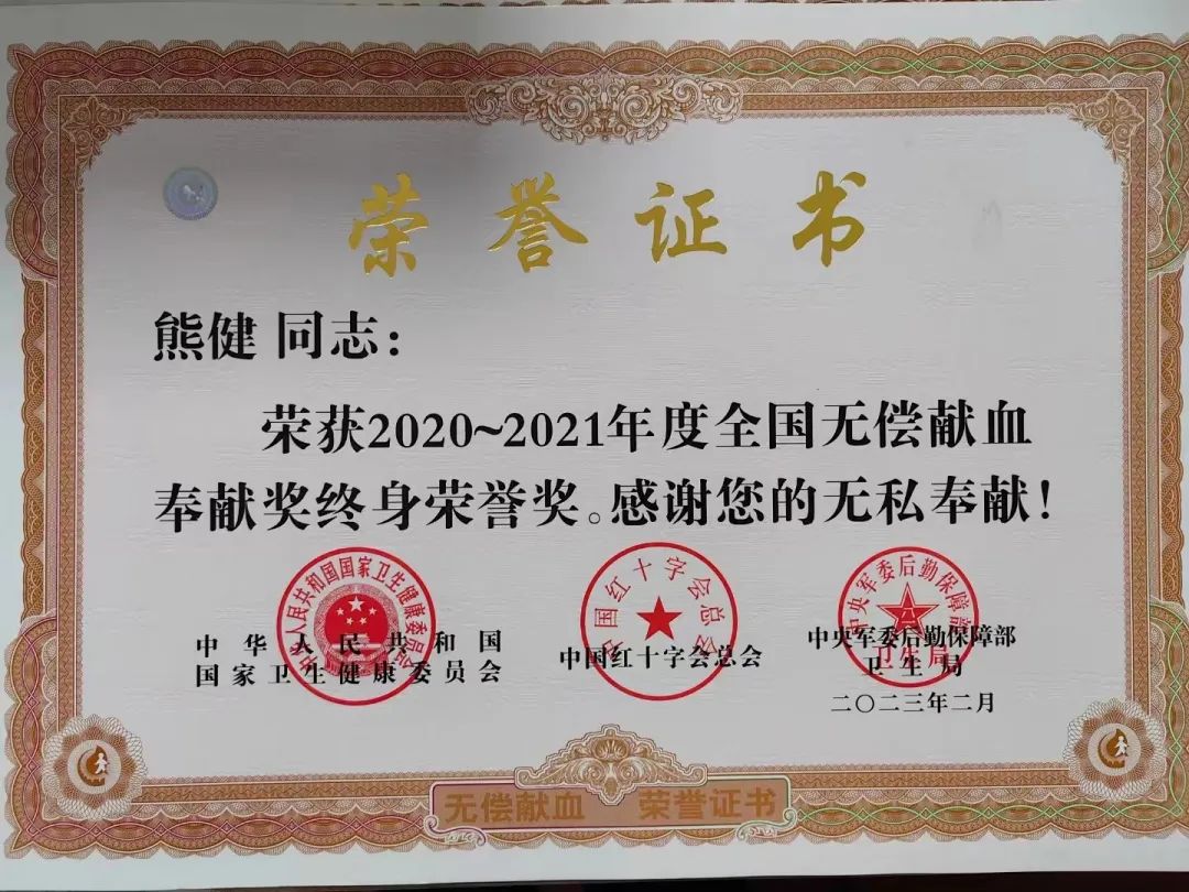 在茂密的森林之中,有一位特殊的守护者,他不仅是宜春森林公安队伍中的一名优秀民警,更是无偿献血事业中的一名杰出代表。他叫熊健,一个普通的名字,背后却蕴藏着不平凡的故事。 自2003年起,熊健便踏上了无偿献血的征程,这一献就是21年,他用自己的实际行动诠释了什么是真正的无私奉献。 在这21年里,熊健共献血80次,献血量高达34400cc。这些数字背后,是他对生命的敬畏和对他人的深情厚谊。他的血液,如同一股股暖流,流淌在需要帮助的人的身体里,给他们带来了希望和力量。 最初,他只是简单地捐献全血,但随着时间的推移,他逐渐了解到捐献血小板对于拯救白血病等血液病患者的重要性。于是,从2007年开始,他毅然加入了捐献血小板的队伍。与捐献全血相比,捐献血小板需要更长的时间和更高的技术要求,但熊健从未退缩过。他用自己的行动,为需要血小板的患者送去了生命的希望。 在熊健的献血历程中,他荣获过全国无偿献血奉献奖终身荣誉奖、全国及全省无偿献血志愿服务终身荣誉奖。这是对他无私奉献精神的最高肯定,也是对他坚持不懈精神的最好证明。 2023年7月5日,是熊健46周岁的生日。这一天,他完成了自己第80次的无偿献血。在这个特殊的日子里,熊健用自己的实际行动诠释了什么是真正的生日礼物——那就是用自己的血液去拯救他人的生命。 在未来的日子里,熊健表示将继续坚持无偿献血事业,用自己的实际行动去帮助更多的人。他希望通过自己的努力能够为社会做出更多的贡献,同时也希望能够影响更多的人加入到无偿献血队伍中来,共同为构建和谐社会贡献自己的力量。 |