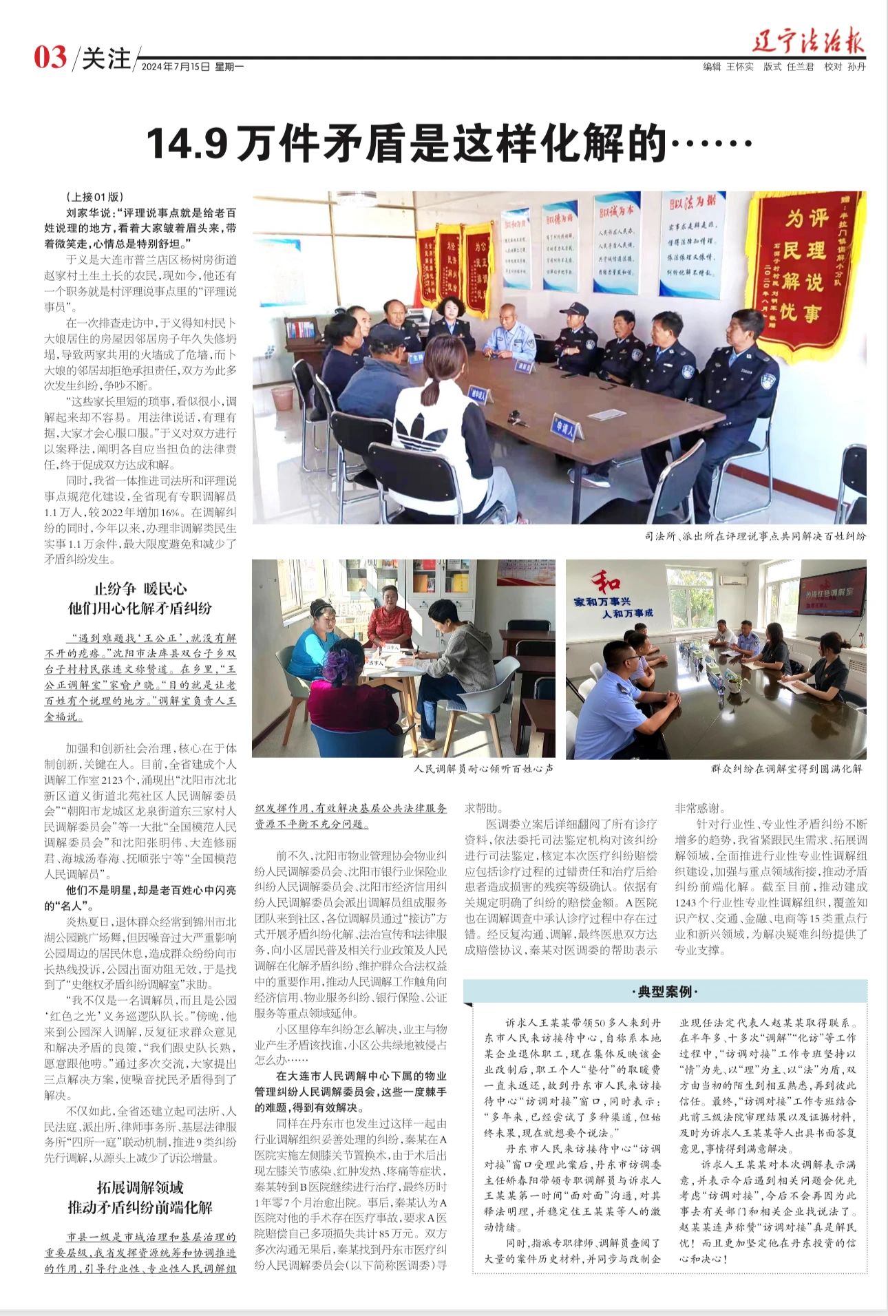 媒体关注丨辽宁法治报:我省四级调处化解体系做实“一站式”调解