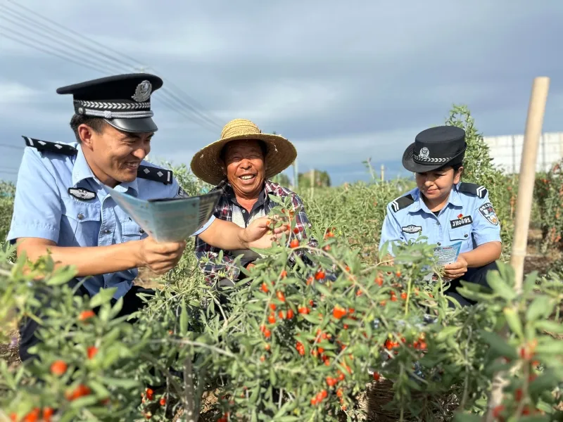 7月,红艳艳的枸杞鲜果在枝头摇曳,令人沉醉。“中国枸杞之乡”精河,又迎来了一年一度的采摘期。在精河县,枸杞是一张走向世界的“红色名片”,更是当地公检法司重点保护的对象。 7月14日一大早,精河县公安局永集湖派出所副所长高乃拿着一叠合同模板,走进精河县托里镇旦达盖村枸杞地。正值枸杞丰收季节,他要为农户提示销售过程中的法律风险,给大家送上“定心丸”。 “叔,今年又是个丰收年呀,你看这枸杞都挂满枝了。” “小高,你来得正好,我正准备问你今年的买卖合同该咋签呢!” 高乃赶紧拿出合同模板,递给这片枸杞地的主人齐自旗。 “这个合同好,条款清晰权责明确,很实用!”齐自旗说。 精河县枸杞种植面积达10.3万亩,总产量占到全疆的70%以上。目前,精河县已形成以托里镇为核心,八家户农场、茫丁乡为两翼的枸杞绿色标准化示范区核心种植带。 枸杞种植业是托里镇的优势支柱产业,每年6月开始,枸杞收获季,因采摘引发的矛盾纠纷也多了起来。2023年5月,永集湖派出所成立“红枸杞”调解室,排查化解矛盾纠纷,为群众全力纾解烦心事,为当地发展“枸杞经济”营造良好环境。 6月初,种植户李某与王某因地界问题产生纠纷,“红枸杞”调解室民警查询资料、走访村民,明确土地边界,促成双方签订调解协议书;7月2日,村民张某和韩某因枸杞采摘工资结算问题引发纠纷,民警将他们请到“红枸杞”调解室,摆事实、讲道理,问题解决。 这几日,还有一支“法律志愿者”服务团活跃在精河县各个枸杞企业,为经营者提供法律咨询服务。这支队伍是由精河县人民法院的法官组成,每年他们都会定期到枸杞企业开展“法治体检”,围绕企业发展中的热点难点问题,向经营者答疑解惑。同时,该院积极畅通司法服务渠道,优化枸杞企业投资者保护机制,为企业提供更加高效、便捷的司法服务。 枸杞收获的季节,从八家户农场到托里镇,一条总长60里的枸杞长廊,拉近了行人和枸杞地的距离。精河县枸杞协会副会长、精河县检察公益诉讼助力“精河枸杞”品牌保护义务观察员刘东经常会徜徉于枸杞长廊中,倾听枸杞种植户提出的问题和建议。 5月22日,精河县人民检察院成立公益诉讼助力 “精河枸杞”品牌保护联系点。如今,联系点已成为检察机关与相关部门、企业之间的桥梁和纽带,在促进信息共享、资源保护、推进品牌保护工作中发挥积极作用。精河县人民检察院党组成员、副检察长闫昆旺说,检察院将继续依托该联系点,加强部门间的沟通协调,形成合力,共同打击侵犯精河枸杞品牌权益的违法行为,守护好“精河枸杞”品牌。
