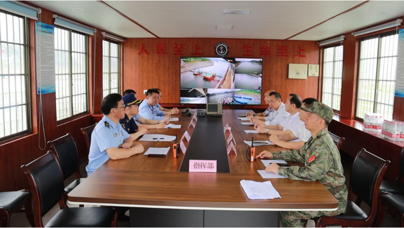 水警总队指挥中心实时呈现演练现场画面