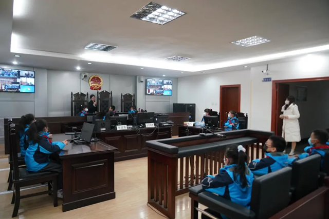 学生们先后参观了金台法院诉讼服务大厅、人民法院在线调解平台、少年法庭、审判法庭、家事法庭等场所。在少年法庭,法官向同学们讲解了少年法庭中“圆桌”的作用和意义,阐明了民事审判和刑事审判的区别,以及庭审中应注意的事项。“通过在法院参观学习,我对法院工作有了深刻了解,今后我要努力做一名学法、懂法、守法、用法的好少年。”学生代表王亦若表示。