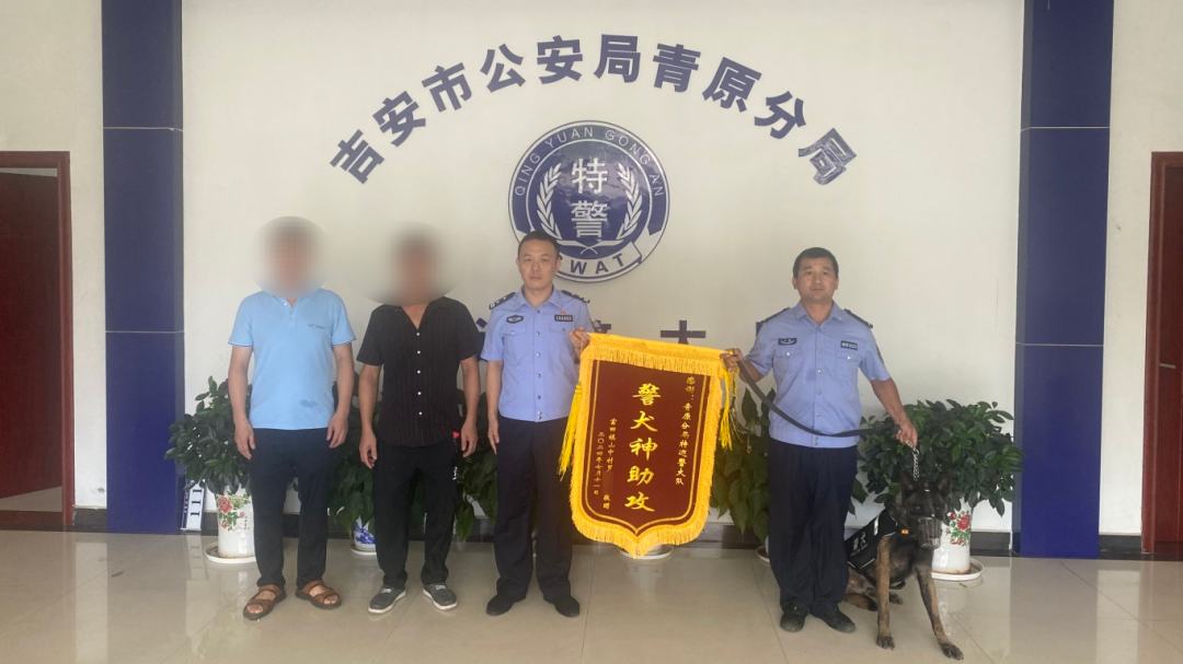 为了尽快找到走失老人 7月11日 分局邀请市公安局刑警支队参与寻找 训犬员宋鹏辉、胡翔 带领警犬“巴克”到达现场展开搜救 ▲警犬嗅闻走失老人梁某的衣服气味 警犬“巴克”以走失老人 睡过枕头和衣服作为嗅源 以老人最后出现的位置为起点 在杂草丛生不见人影的山林中 咬定嗅源,左突右钻 7月11日11时许 经过三个多小时的追踪 警犬“巴克”突然变得兴奋起来 迅速朝向半山间的一个养鸡场奔去 并作出吠叫示警反应 训导员宋鹏辉凭经验意识到 警犬发现了重要人体气味 于是迅速跟着冲了过去 发现走失老人坐在养鸡场门外 意识还算清醒 所有人悬着的心终于放下了 询问之下 老人原系迷路走到养鸡场附近 不知道如何回家 经初步检查,老人身体并无大碍 民警立即协助家属把老人送回家中 并叮嘱家属 要加强对老人的日常照看 “奇了!这警犬也太厉害了!” “人民警察为人民,给警犬加鸡腿!” 周边群众得知走失老人成功找到后 纷纷向民警和警犬“巴克” 竖起大拇指 ▲老人家属为民警、警犬送来锦旗感谢 |