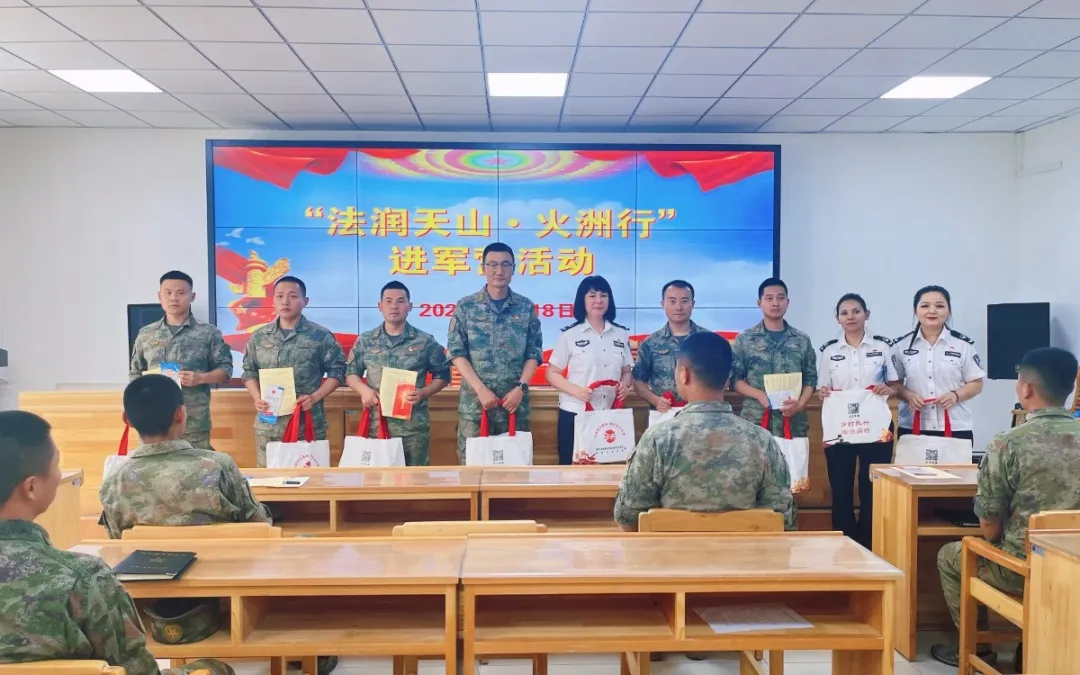 7月18日,吐鲁番市司法局、高昌区司法局走进驻吐某部队,开展“法润天山·火洲行”双拥共建活动,为部队官兵带来了一场精彩的法治宣讲,并赠送普法礼包和法律书籍。(来源:吐鲁番市高昌区司法局)