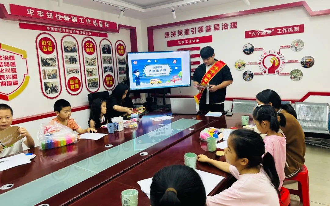 7月19日,乌鲁木齐经开区(头屯河区)司法局火车西站司法所联合景明社区开展平安暑期法治教育活动。(来源:乌鲁木齐经开区<头屯河区>司法局)