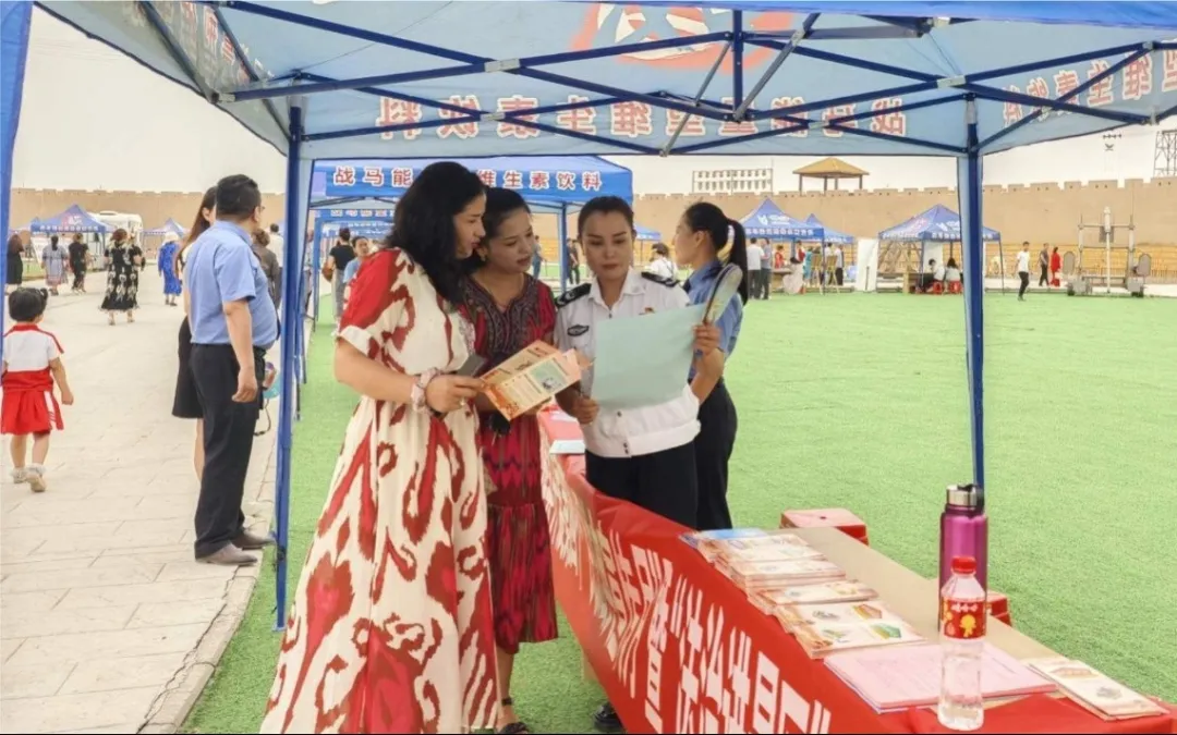 近日,沙雅县司法局走进它乾城景区开展行政复议法宣传活动,通过向景区商户及游客发放宣传彩页、现场解答咨询等方式宣传行政复议法。(来源:沙雅县司法局)