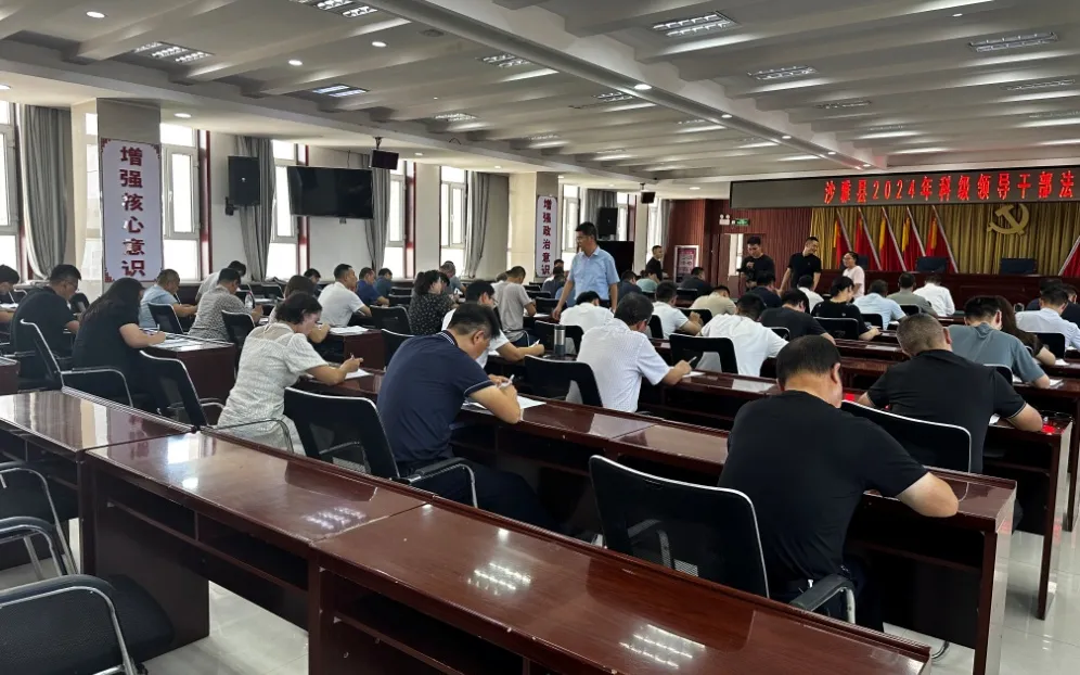 7月17日,由沙雅县委组织部、纪委监委和司法局联合在县委党校组织开展2024年科级领导干部法律法规知识考试,全县200名领导干部参加考试。(来源:沙雅县司法局)