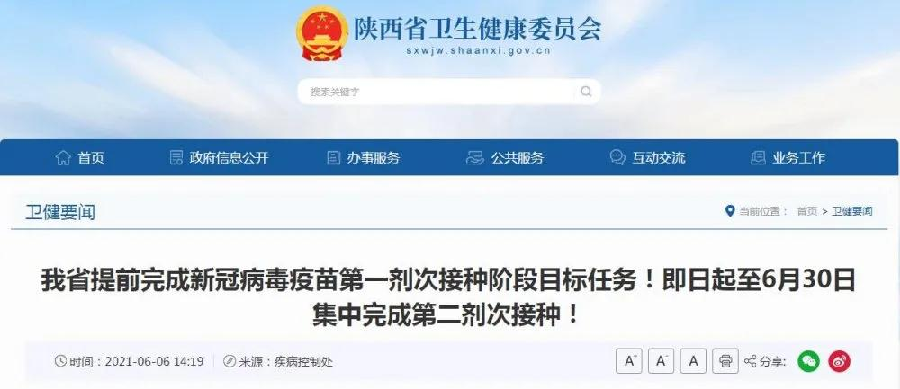 我省提前完成新冠病毒疫苗第一剂次接种阶段目标任务!即日起至6月30日集中完成第二剂次接种