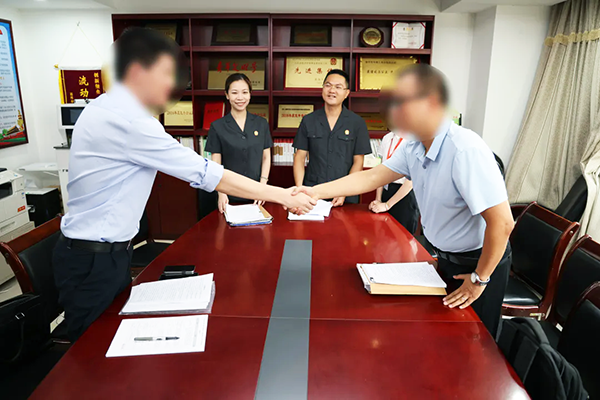 但因各方争议较大,两次开庭询问中各方情绪都剑拔弩张,调解工作开展得异常艰难。苏维海决定先采用“背靠背”的方式进行协调,分别与各方当事人约定时间,通过沟通释理的方式,从案件的缘起、各方现实处境、利益得失等方面,对A公司、B公司、王某等人进行劝导纾解。此后的十个月里,苏维海及法官助理林颖与各方当事人进行了数十次的会面、电话与网络沟通,才最终解开各方的心结、法结、案结。