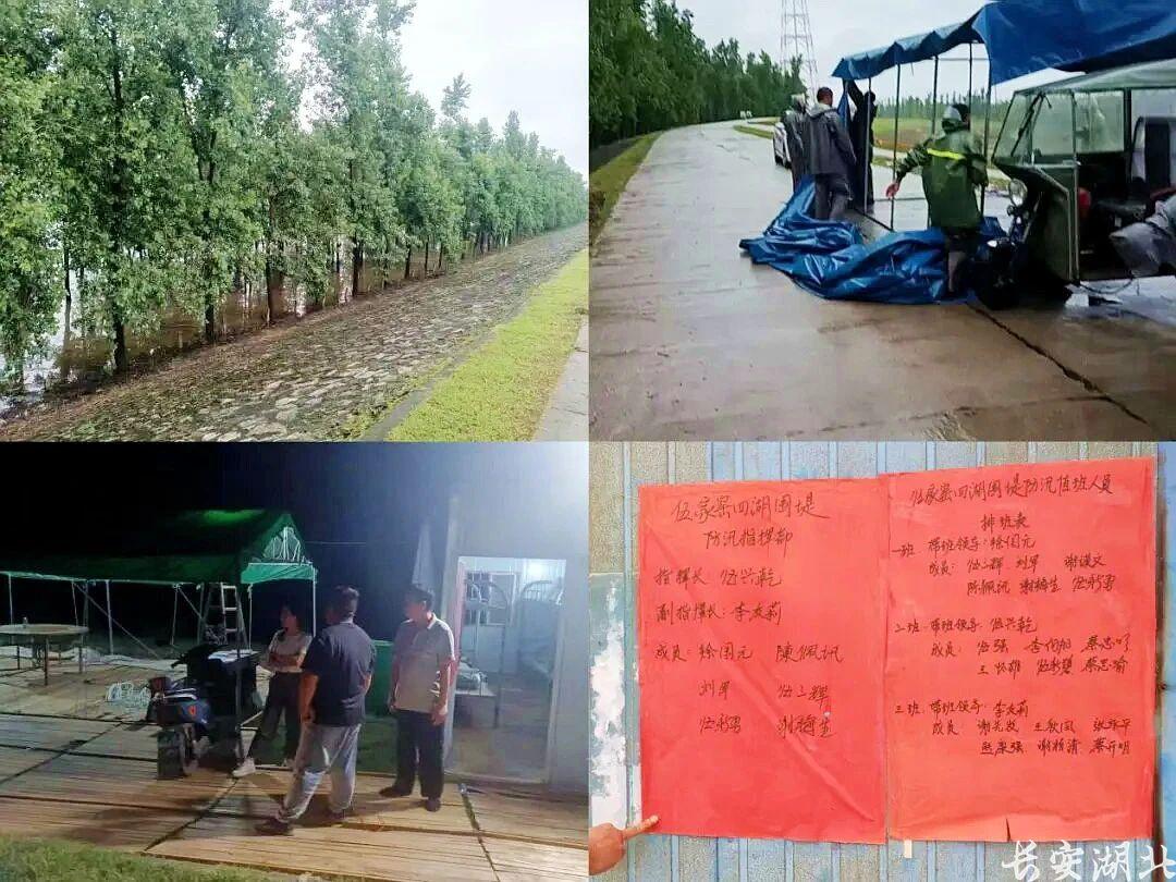 洪湖市县两级司法局工作组成员带领乡镇司法所工作人员吃住在堤上,每两小时巡堤一次,一天查看压把井三次,共排查隐患点位100多个,确保安全度汛。