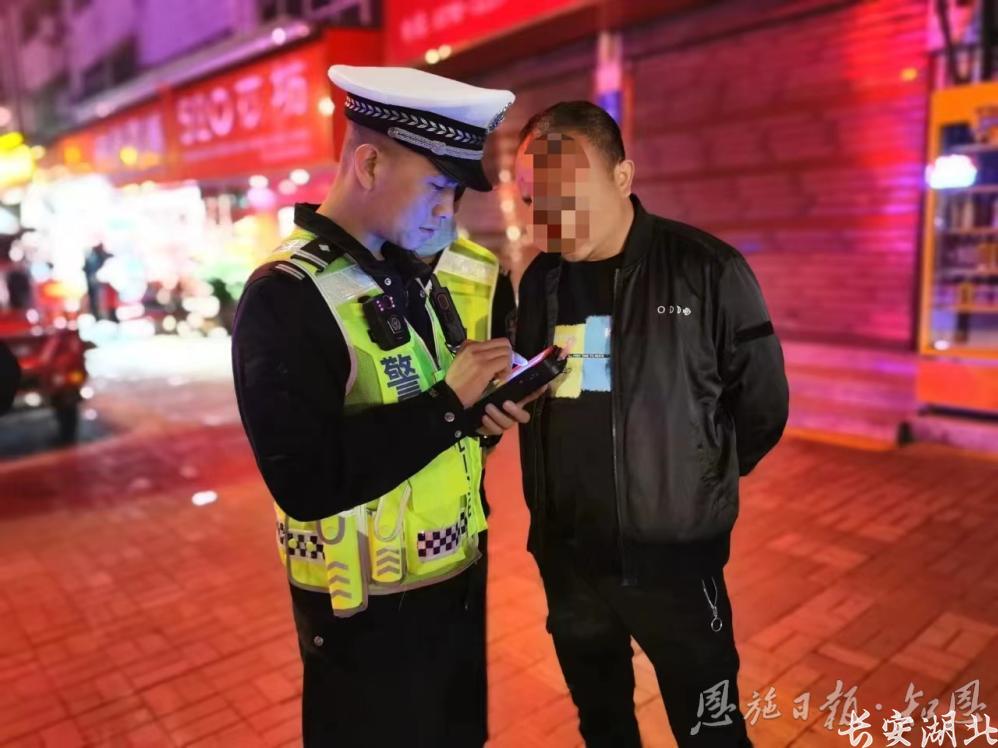 张涵带队开展夜查行动,对机动车驾驶员进行呼气式酒精检测