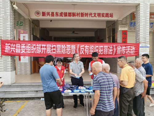 近日,新兴县委组织部先后深入东成镇都斛村和稔村镇稔村社区开展扫黑除恶暨《反有组织犯罪法》宣传活动,进一步鼓励和引导广大村民群众积极参与常态化扫黑除恶斗争。