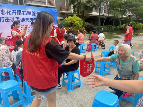 活动现场,通过摆放宣传展板、发放宣传资料及宣传小礼品等形式,志愿者及网格员们向居民宣讲了《中华人民共和国反有组织犯罪法》的出台背景、重大意义、主要亮点等,使辖区居民对黑恶势力犯罪有了更全面的认识,进一步增强了居民的法治意识和防范能力。