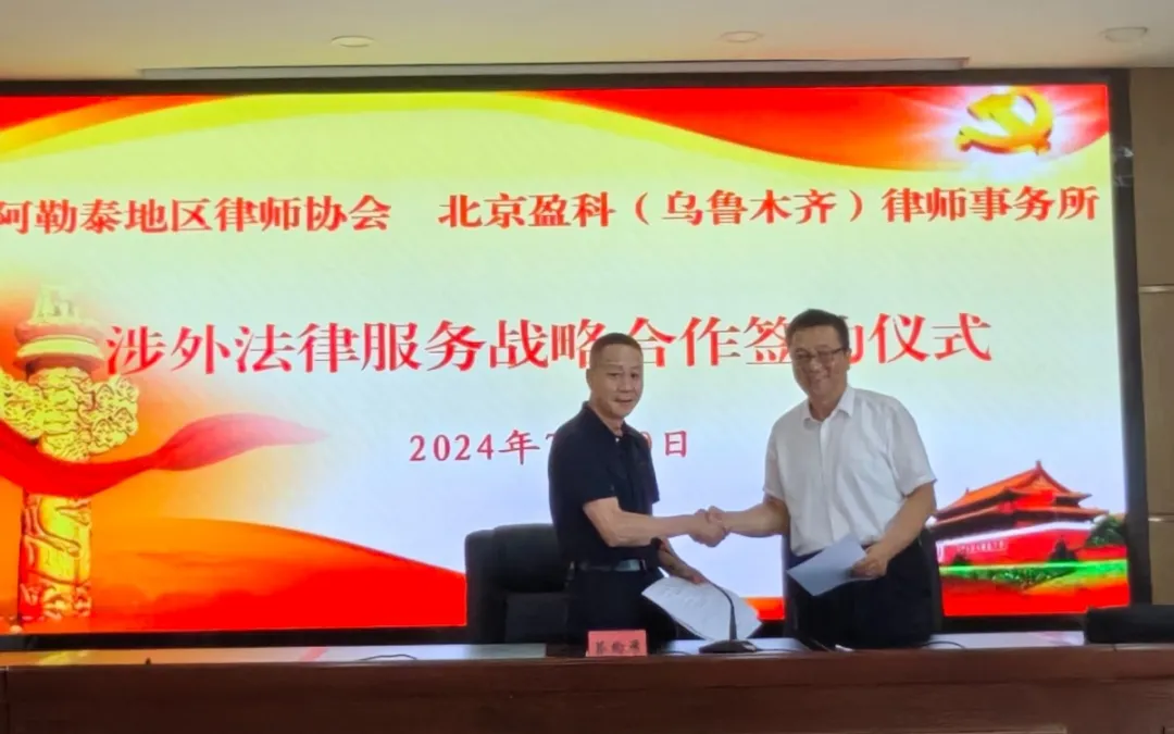 7月20日,阿勒泰地区律师协会与北京盈科(乌鲁木齐)律师事务所以共同推进阿勒泰涉外法律服务业务为目的,在资源共享、人才培训、业务合作等领域达成了合作意向,签署了《涉外法律服务战略合作协议》。当日,北京盈科(乌鲁木齐)律师事务所中亚法律事务部主任杨天斌进行了授课,全地区16家律师事务所40余名律师参加培训。