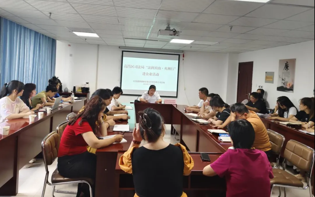7月22日,吐鲁番市高昌区司法局组织浩然法律服务所法律服务工作者在吐鲁番国创城市建设投资有限公司开展“送法进企业 护航促发展”活动。以“公司纠纷争议解决的主要影响”为题,从请求变更公司登记纠纷、公司决议纠纷、对损害公司利益责任纠纷的主要影响等方面解读新修订的公司法,对企业经营中可能遇到的法律问题进行分析研判,给出合理的意见建议。