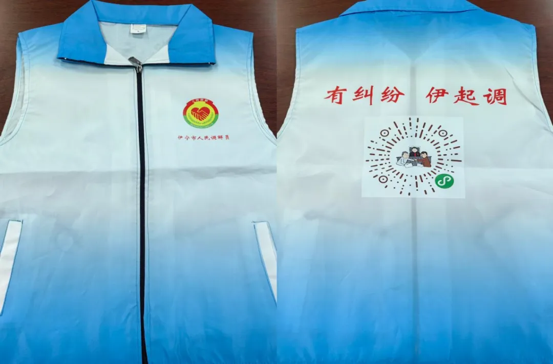 为提高人民调解的标识度、知晓度、专业度,伊宁市司法局从统一规范着装开始,广泛征求意见,最终定格这款蓝色的专职人民调解员专属马甲设计。