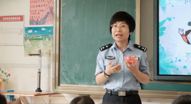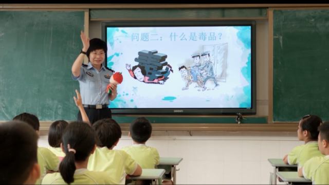杨璇在禁毒小课堂给孩子们上课