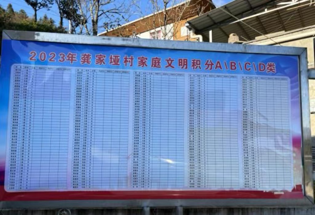 龚家垭村多年来定期开展最美家庭评选活动,探索实行家庭文明积分制。村民可以通过参加各类文明活动、志愿服务等方式获取积分,积分达到一定数额即可参与最美家庭评选,并有机会获得荣誉证书和奖品。