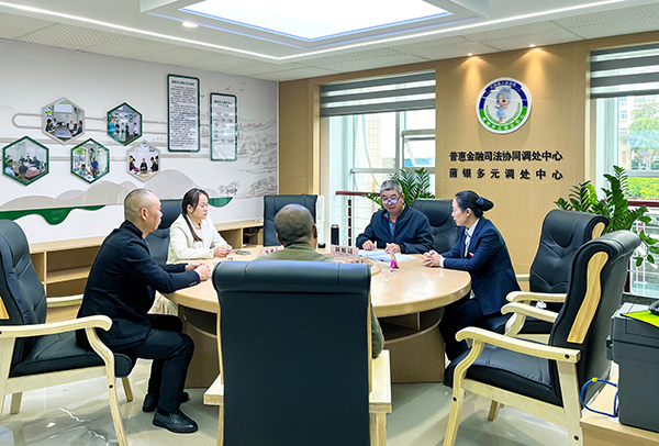 古田法院干警在古田县菌银多元调处中心调解案件