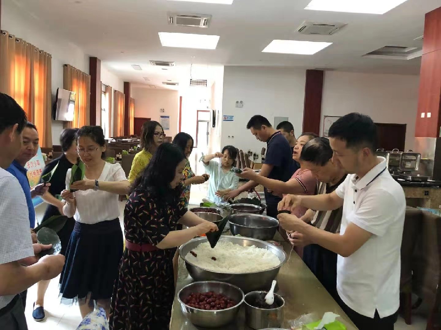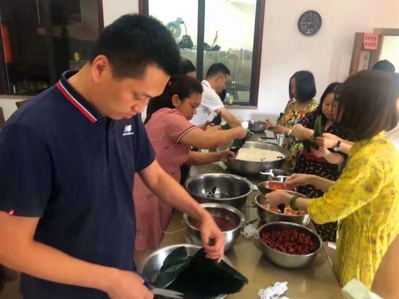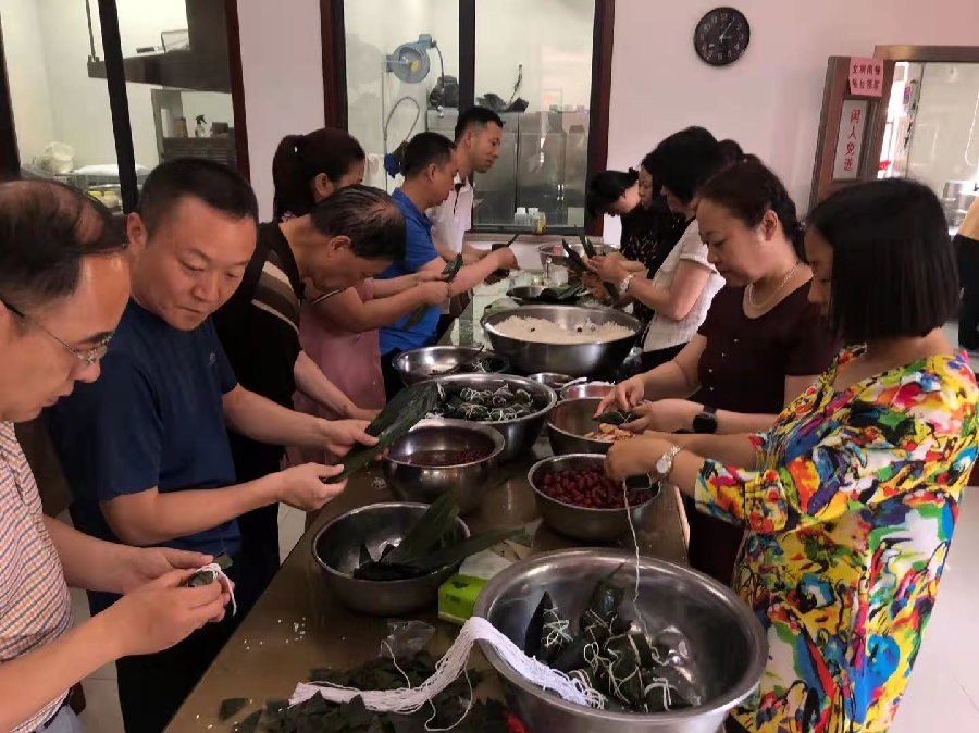 下午,在厅机关餐厅活动正式开始,大家围在桌前,纷纷展现各自包粽子的技巧,娴熟的“老手”带着“新手”,卷粽叶、放糯米、放鲜肉,相互配合,十分默契。不一会儿,各式各样的漂亮粽子就这样在大家手中诞生了,经过1个多小时的辛勤劳作,大家便包好了满满几盆的粽子。