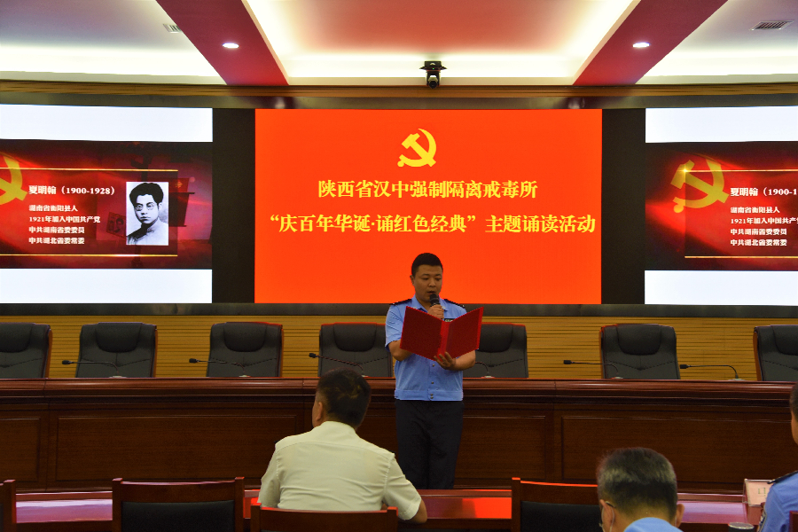 6月8日,陕西省汉中强制隔离戒毒所举办“庆百年华诞诵红色经典”主题诵读活动。所党委副书记、政委张振宇,党委委员、政治处主任马翔天参加活动并作现场点评。