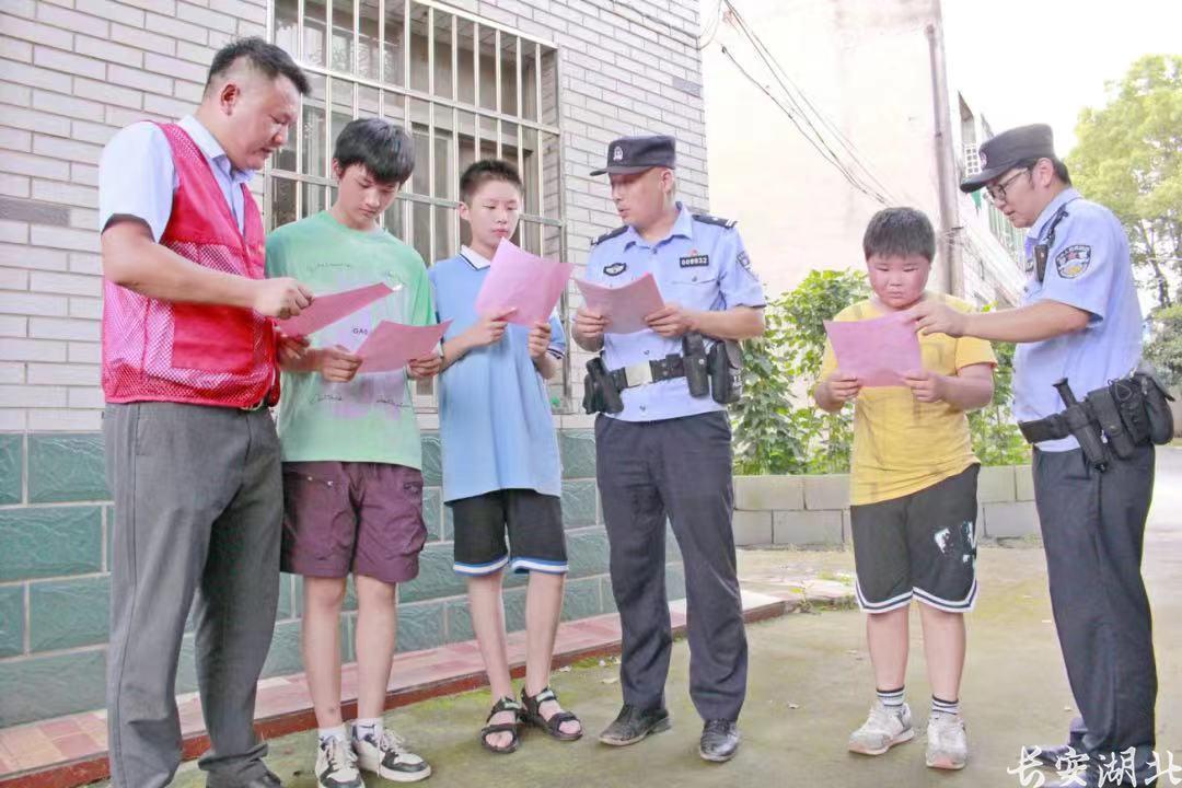 在鄂州市临空经济区新庙镇,民警自编顺口溜,走村串户提醒居民掌握防溺水知识,并将精心制作的防溺水宣传材料发给群众,走访途中,民警还在重点水域设立醒目警示标牌,筑牢防溺水“藏蓝堤坝”。