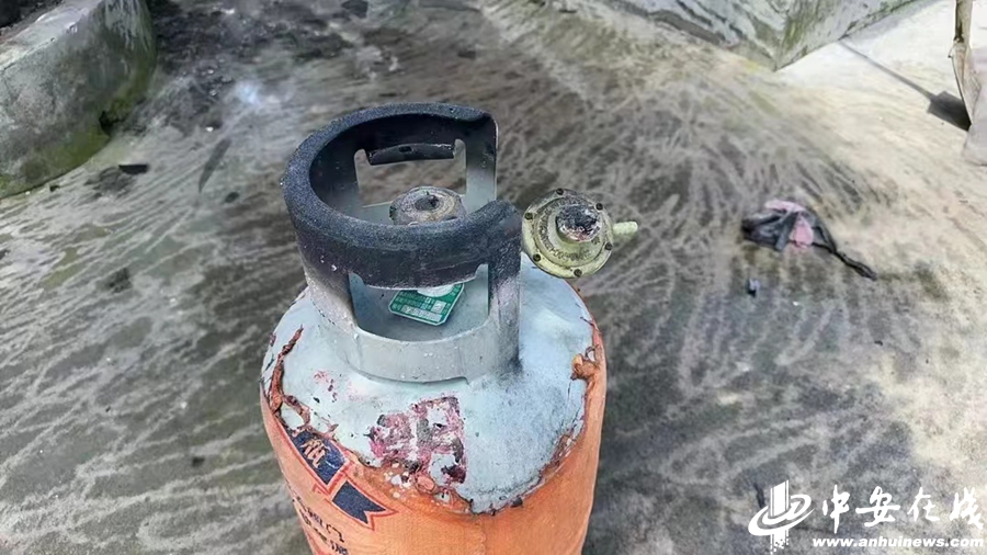 接到报警后,肥西县公安局铭传派出所值班警力立即赶往现场,只见厨房内浓烟滚滚,一个煤气罐倒在地上,喷着火舌,随时可能发生爆炸。