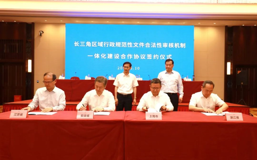 上海江苏浙江安徽签署合作协议 推进长三角区域行政规范性文件合法性审核机制一体化建设