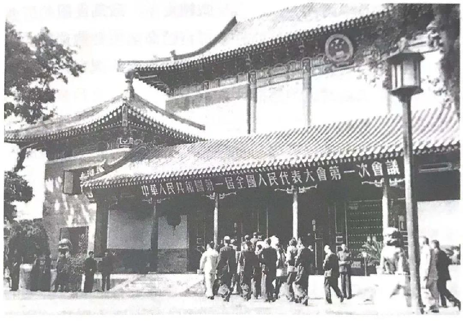 参加一届全国人大一次会议的代表步入会场。图片来源:《中国共产党简史》