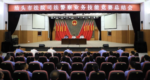 赛后,汕头中院组织开展全市法院司法警察业务技能竞赛总结会,宣布入围全省法院司法警察业务技能竞赛的法警名单,同时为获得此次竞赛一、二、三等奖的基层法院司法警察队伍及个人颁发奖牌证书。