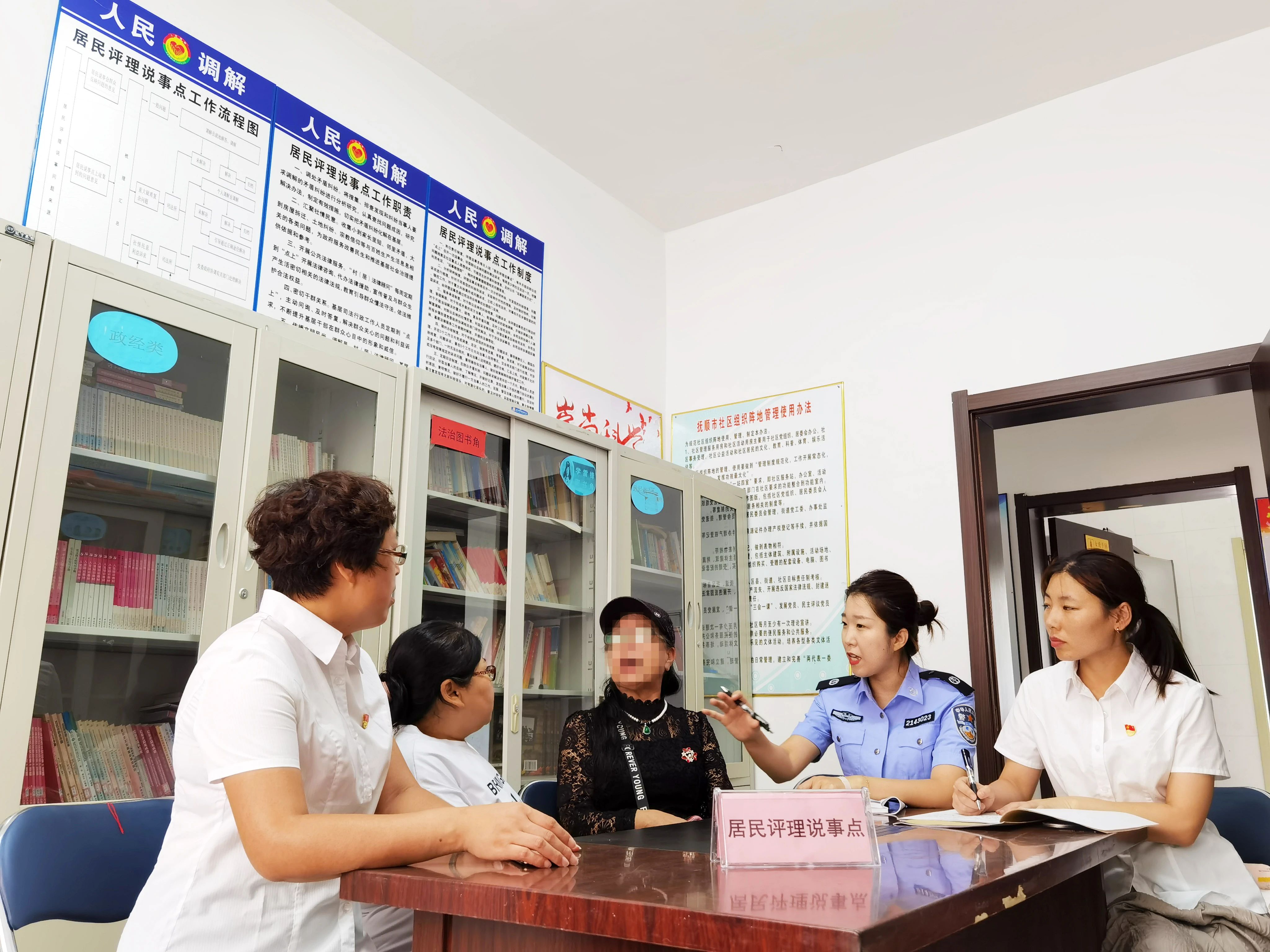 (抚顺市东洲区司法局章党(街道)司法所工作人员正在进行人民调解。)