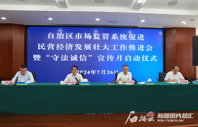 7月26日,自治区市场监督管理局举行促进民营经济发展壮大工作推进会暨“守法诚信”宣传月启动仪式。石榴云/新疆日报记者 索蓉芝 摄