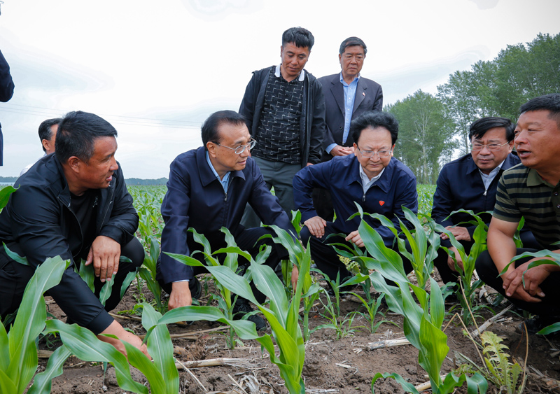 李克强十分关心粮食生产。在松原市,他走进农田察看玉米长势,与农民、农技人员交流。大家告诉总理,今年墒情和气候好,粮食有望丰收,但尿素、柴油等农资价格涨得多,近期玉米价格回落也让心里不踏实。李克强叮嘱随行有关负责同志,当前是粮食生产关键期,要采取有效措施平稳农资价格。他说,中国人口多,粮食足天下安。要保持合理粮价水平,遏制农资价格上涨,保护好种粮农民积极性。他强调,要守护好宝贵的黑土地,培育更多优良品种,让东北这个大粮仓更实更满。