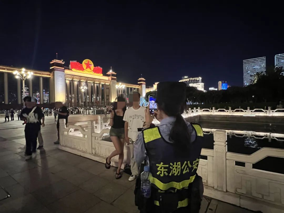 南昌东湖公安以夏季治安打击整治行动为载体 创新“警力下沉联勤联动”机制 每日抽调机关警力 下到一线、沉在一线 联动开展夜间常态巡防、服务群众 以“警”守“景” 用警察常在、警灯常闪、警车常巡 换取群众 笑容常在、平安常伴、幸福常随 华灯初上的八一广场 人头攒动、熙熙攘攘市民游客络绎不绝 纷纷前往金水桥旁、省美术馆前打卡留念 机关警力与派出所警力高频次联巡联防 妥善处置求助警情 热情服务群众 耐心解答问题 给予正确便捷指引