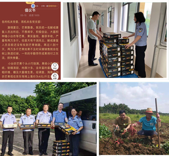 一是齐心“解民急”,开展众人帮困活动。5月上旬,海南省戒毒管理局戒毒康复指导处通过微信群,得知省府城戒毒所一名解戒康复人员,自2005年解戒以来一直坚持自主创业,保持良好操守,近期因芒果丰收、无销售渠道而心急如焚。局戒毒康复指导处迅速向局机关党委反映,局机关党委第一时间制发倡议书,向全系统各级机关党委发起团购倡议。各级党员领导干部率先垂范,全体党员积极响应,通过“以购代帮”形式,在短短两天时间内,购买芒果6780斤,帮助潘某解决了燃眉之急。开展党史学习教育以来,局戒毒康复指导处联合各戒毒所民警组成帮教团,集众力为解戒人员销售芒果、地瓜,赠送鹅苗、送米、送油,开展励志戒毒、修复家庭关系等针对性落实帮扶措施600余件次,有效帮助解戒人员解决了实际困难,局康复指导处被解戒人员亲切地称为“持戒加油站”和“励援之家”。