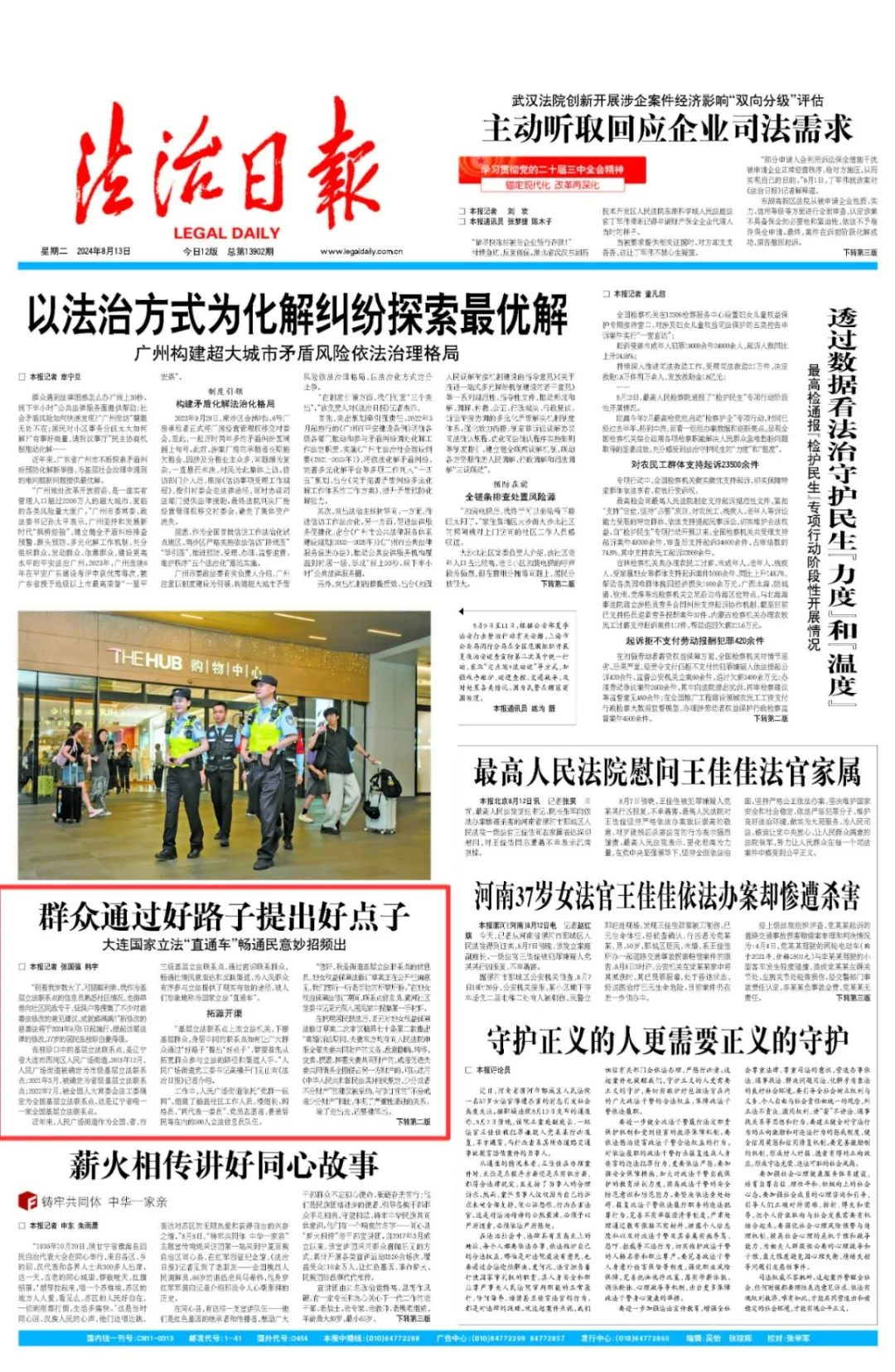 媒体关注丨法治日报:群众通过好路子提出好点子 大连国家立法“直通车”畅通民意妙招频出