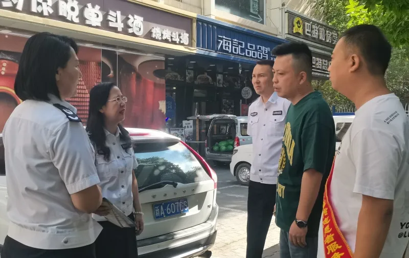 8月12日,乌鲁木齐市沙依巴克区司法局扬子江路司法所所长黄峥带领工作人员和社区普法志愿者在辖区开展法治宣传。